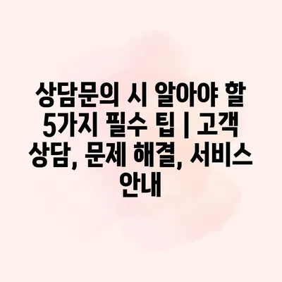 상담연락 시 알아야 할 5가지 필수 팁 | 고객 상담, 문제 해결, 서비스 공지 고객 상담은 효율적인 의사소통을 위한 첫 번째 단계입니다. 상담 시에 필요한… 더 보기 »상담문의 시 알아야 할 5가지 필수 팁 | 고객 상담, 문제 해결, 서비스 안내