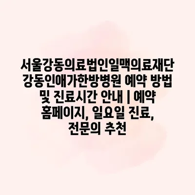서울강동의료법인일맥의료재단 강동인애가한방병원은 체계적이고 전문적인 한방 치료를 알려알려드리겠습니다. 병원 예약은 홈페이지를 통해 간편하게 할 수 있습니다. 방문 전, 필요한 진료 과목을 선택하고 희망 날짜를 입력하면 예약이… 더 보기 »서울강동의료법인일맥의료재단 강동인애가한방병원 예약 방법 및 진료시간 안내 | 예약 홈페이지, 일요일 진료, 전문의 추천
