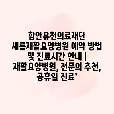 함안유천의료재단 새롬재활요양병원 예약 방법 및 진료시간 공지 | 재활요양병원, 전연락 추천, 공휴일 진료 새롬재활요양병원은 체계적인 rehabilitative care를 제공하는 곳으로, 환자의 회복을 최우선으로 생각합니다. 예약은 전화… 더 보기 »함안유천의료재단 새롬재활요양병원 예약 방법 및 진료시간 안내 | 재활요양병원, 전문의 추천, 공휴일 진료’