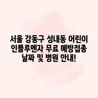 서울 강동구 성내동 어린이 독감예방접종 무료 병원 인플루엔자 무료 접종 대상 날짜 서울 강동구 성내동에서 어린이 독감예방접종 무료로 받을 수 있는 병원에 대한 정보와 인플루엔자… 더 보기 »서울 강동구 성내동 어린이 인플루엔자 무료 예방접종 날짜 및 병원 안내!