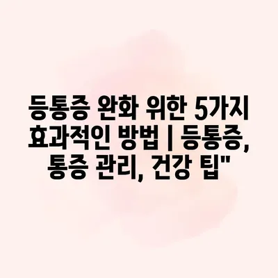 등통증 완화 위한 5가지 효과적인 방법 | 등통증, 통증 관리, 건강 팁 많은 사람들이 일상에서 등통증을 경험하며, 이는 삶의 질을 크게 저하시킬 수 있습니다. 올바른… 더 보기 »등통증 완화 위한 5가지 효과적인 방법 | 등통증, 통증 관리, 건강 팁”