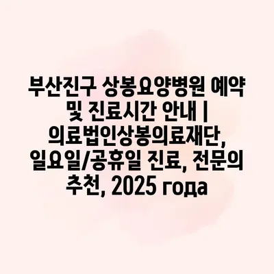 부산진구 상봉요양병원 예약 및 진료시간 안내 | 의료법인상봉의료재단, 일요일/공휴일 진료, 전문의 추천, 2025 года