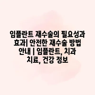 임플란트 재수술의 필요성과 효과에 대해 알아보겠습니다. 임플란트는 자연치아와 유사한 형태와 기능으로, 치아가 상실된 경우에 주로 사용됩니다. 그러나 특정 원인으로 인해 임플란트가 실패할 수 있으며, 이… 더 보기 »임플란트 재수술의 필요성과 효과| 안전한 재수술 방법 안내 | 임플란트, 치과 치료, 건강 정보