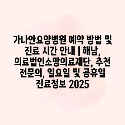 가나안요양병원 예약 방법 및 진료 시간 공지 | 해남, 의료법인소망의료재단, 추천 전연락, 일요일 및 공휴일 진료정보 2025 가나안요양병원은 환자 중심의 진료를 지향하며 다양한 의료 서비스를… 더 보기 »가나안요양병원 예약 방법 및 진료 시간 안내 | 해남, 의료법인소망의료재단, 추천 전문의, 일요일 및 공휴일 진료정보 2025
