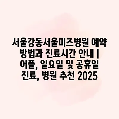 서울강동서울미즈병원 예약 방법과 진료시간 안내 | 어플, 일요일 및 공휴일 진료, 병원 추천 2025