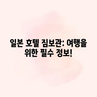 일본호텔 짐보관 편리한 여행을 위한 필수 정보 일본은 매년 수많은 관광객들이 방문하는 인기 있는 여행지입니다. 그러나 여행 중 가방과 짐을 관리하는 것이 여행객들에게는 일반적인 고민거리입니다.… 더 보기 »일본 호텔 짐보관: 여행을 위한 필수 정보!