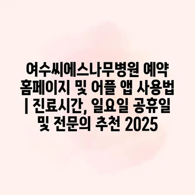 여수씨에스나무병원 예약 홈페이지 및 어플 앱 사용법 | 진료시간, 일요일 공휴일 및 전연락 추천 2025에 대해 공지제공합니다. 여수씨에스나무병원은 환자 여러분의 편의를 위해 예약 홈페이지와 어플… 더 보기 »여수씨에스나무병원 예약 홈페이지 및 어플 앱 사용법 | 진료시간, 일요일 공휴일 및 전문의 추천 2025