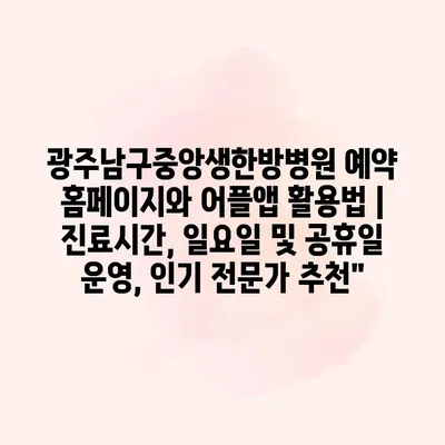 광주남구중앙생한방병원 예약 홈페이지와 어플앱 활용법에 대해 알아보겠습니다. 요즘은 병원 예약도 온라인으로 쉽게 할 수 있는 시대입니다. 이 병원의 예약 홈페이지와 어플앱을 통해 간편하게 진료일정을 잡는… 더 보기 »광주남구중앙생한방병원 예약 홈페이지와 어플앱 활용법 | 진료시간, 일요일 및 공휴일 운영, 인기 전문가 추천”