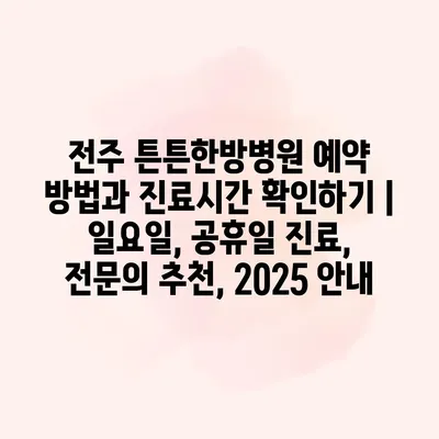 전주 튼튼한방병원 예약 방법과 진료시간 확인하기에 대한 내용을 제공하겠습니다. 병원 예약은 전화 또는 온라인 시스템을 통해 할 수 있습니다. 일반적으로 전화를 통해 예약할 경우, 친절한… 더 보기 »전주 튼튼한방병원 예약 방법과 진료시간 확인하기 | 일요일, 공휴일 진료, 전문의 추천, 2025 안내