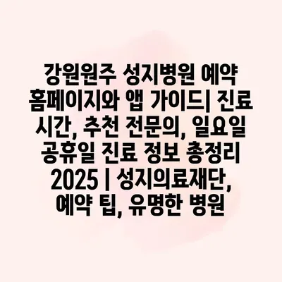 강원원주 성지병원은 최신 의료 서비스를 제공하는 주목받는 병원입니다. 병원 예약은 홈페이지와 앱을 통해 간편하게 진행할 수 있으며, 사용자 친화적인 인터페이스로 누구나 쉽게 방문할 수 있습니다.… 더 보기 »강원원주 성지병원 예약 홈페이지와 앱 가이드| 진료 시간, 추천 전문의, 일요일 공휴일 진료 정보 총정리 2025 | 성지의료재단, 예약 팁, 유명한 병원