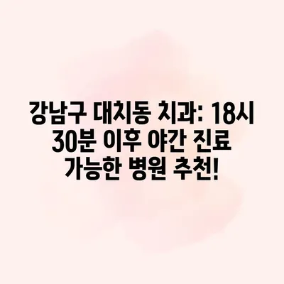 강남구 대치동 치과 야간진료 병원 추천 18시 30분 이후 진료 가능 강남구 대치동에서 18시 30분 이후에 야간진료를 받을 수 있는 치과 병원을 찾고 계신가요? 오늘… 더 보기 »강남구 대치동 치과: 18시 30분 이후 야간 진료 가능한 병원 추천!