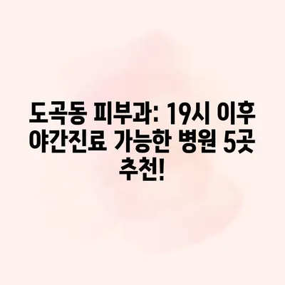 도곡동 피부과 야간진료 병원 추천 19시 이후 진료 가능 도곡동에서 피부과 야간진료를 찾고 계신가요? 귀하의 기대에 맞춘 병원들을 소개할 예정입니다. 서울 강남 도곡동에는 19시 이후에도… 더 보기 »도곡동 피부과: 19시 이후 야간진료 가능한 병원 5곳 추천!