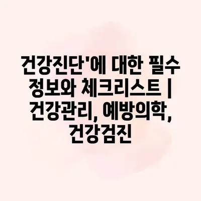 건강진단은 건강관리의 중요한 첫 걸음입니다. 정기적으로 받는 건강검진은 조기 질병 발견과 예방을 위한 필수 과정입니다. 이번 글에서는 건강진단에 대한 기본 정보와 함께 실천할 수 있는… 더 보기 »건강진단’에 대한 필수 정보와 체크리스트 | 건강관리, 예방의학, 건강검진