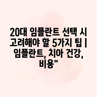 20대 임플란트 선택 시 고려해야 할 5가지 팁 | 임플란트, 치아 건강, 비용 먼저, 치과 선택이 가장 중요합니다. 믿을 수 있는 치과를 찾기 위해서는 환자… 더 보기 »20대 임플란트 선택 시 고려해야 할 5가지 팁 | 임플란트, 치아 건강, 비용”