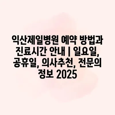 익산제일병원 예약 방법과 진료시간 안내 | 일요일, 공휴일, 의사추천, 전문의 정보 2025