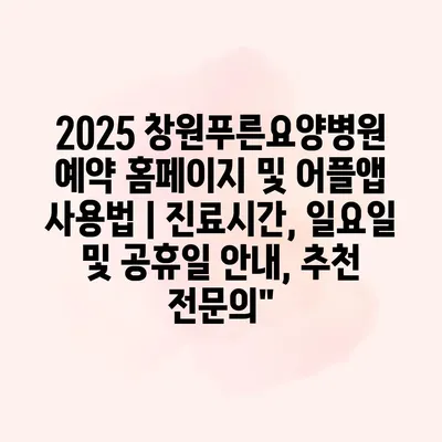 2025 창원푸른요양병원 예약 홈페이지 및 어플앱 사용법에 대해 알아보겠습니다. 예약 홈페이지와 어플앱은 환자의 편리한 진료 예약을 위해 매우 유용합니다. 사용자 친화적인 인터페이스로 쉽게 방문할 수… 더 보기 »2025 창원푸른요양병원 예약 홈페이지 및 어플앱 사용법 | 진료시간, 일요일 및 공휴일 안내, 추천 전문의”