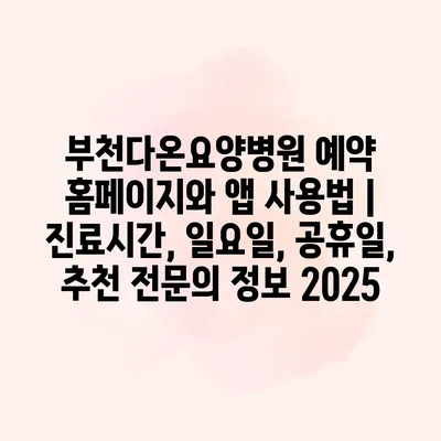 부천다온요양병원 예약 홈페이지와 앱 사용법 | 진료시간, 일요일, 공휴일, 추천 전문의 정보 2025