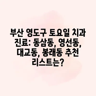 부산 영도구 토요일 치과 진료 추천 동삼동, 영선동, 대교동, 봉래동 부산 영도구에서 토요일에 치과 진료를 받고자 하시는 분들에게 추천드릴 만한 치과 리스트를 안내드립니다. 주말에 급히… 더 보기 »부산 영도구 토요일 치과 진료: 동삼동, 영선동, 대교동, 봉래동 추천 리스트는?