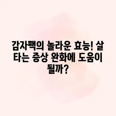 감자팩의 놀라운 효능 살 타는 증상에 도움이 될까 감자팩은 살 타는 증상 완화에 효과적입니다. 항염증 및 냉각 효과를 통해 피부 건강을 개선하는 방법을 알아보세요. 감자는… 더 보기 »감자팩의 놀라운 효능! 살 타는 증상 완화에 도움이 될까?