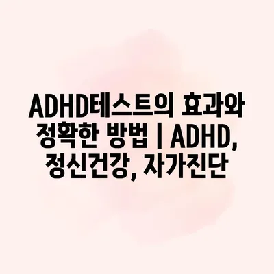 ADHD테스트의 효과와 정확한 방법에 대해 알아보겠습니다. ADHD, 즉 주의력 결핍 과다행동 장애는 많은 사람들에게 영향을 미치는 정신건강 문제입니다. 정확한 자가진단을 통해 자신의 상태를 이해하고, 필요한… 더 보기 »ADHD테스트의 효과와 정확한 방법 | ADHD, 정신건강, 자가진단