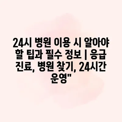 24시 병원 이용 시 알아야 할 팁과 필수 정보는 건강을 지키는 데 꼭 필요합니다. 먼저 응급 진료가 필요한 경우, 신속하게 병원을 찾는 것이 중요합니다. 전화로… 더 보기 »24시 병원 이용 시 알아야 할 팁과 필수 정보 | 응급 진료, 병원 찾기, 24시간 운영”