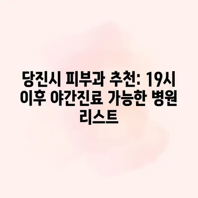 당진시 피부과 야간진료 병원 추천 19시 이후 진료 가능 당진시에서 19시 이후에 야간진료를 하는 피부과 병원에 대해 알아보겠습니다. 늦은 시간에 피부 문제로 고통 받는 많은… 더 보기 »당진시 피부과 추천: 19시 이후 야간진료 가능한 병원 리스트