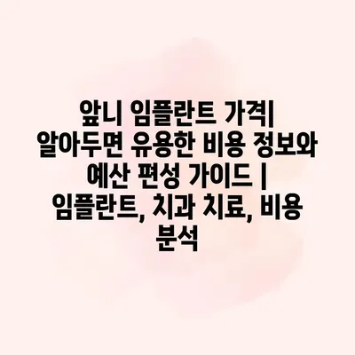 앞니 임플란트 가격은 사람마다 다를 수 있지만, 일반적으로 보험 적용 여부에 따라 차이가 발생합니다. 치과에서 제시하는 가격에는 임플란트 재료비, 수술비, 추가 치료비 등이 포함될 수… 더 보기 »앞니 임플란트 가격| 알아두면 유용한 비용 정보와 예산 편성 가이드 | 임플란트, 치과 치료, 비용 분석