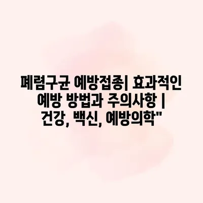 폐렴구균 예방접종은 폐렴 및 관련 질환으로부터 자신을 보호하는 데 중요한 방법입니다. 이 백신은 폐렴구균 감염을 예방하며, 특히 노인과 면역력이 약한 사람들에게 필수적입니다. 백신은 여러 종류의… 더 보기 »폐렴구균 예방접종| 효과적인 예방 방법과 주의사항 | 건강, 백신, 예방의학”