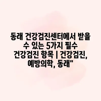 동래 건강검진센터에서 받을 수 있는 5가지 필수 건강검진 항목에 대해 알아보겠습니다. 첫 번째로, 혈압 측정은 기본적인 건강 상태를 알아보는 중요한 검사입니다. 고혈압은 여러 가지 합병증을… 더 보기 »동래 건강검진센터에서 받을 수 있는 5가지 필수 건강검진 항목 | 건강검진, 예방의학, 동래”