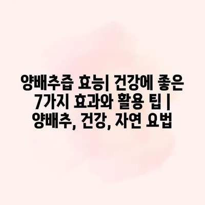 양배추즙 효능| 건강에 좋은 7가지 효과와 활용 팁 | 양배추, 건강, 자연 요법