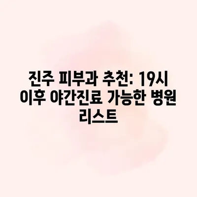 진주시 피부과 야간진료 병원 추천 19시 이후 진료 가능 진주시에서 피부과 야간진료 병원 추천을 찾고 계신가요? 특히 19시 이후에 진료를 보실 수 있는 병원을 찾는… 더 보기 »진주 피부과 추천: 19시 이후 야간진료 가능한 병원 리스트