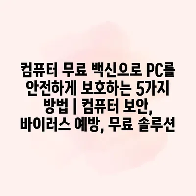 컴퓨터 무료 백신으로 PC를 안전하게 보호하는 5가지 방법 | 컴퓨터 보안, 바이러스 예방, 무료 솔루션 첫 번째 방법은 신뢰할 수 있는 무료 백신 프로그램을 선택하는… 더 보기 »컴퓨터 무료 백신으로 PC를 안전하게 보호하는 5가지 방법 | 컴퓨터 보안, 바이러스 예방, 무료 솔루션