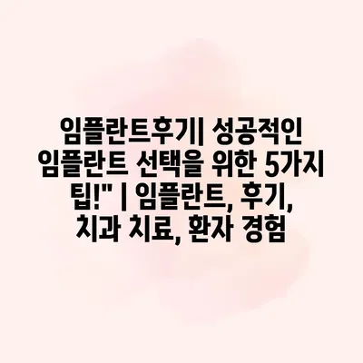 임플란트후기| 성공적인 임플란트 선택을 위한 5가지 팁! 많은 사람들이 임플란트를 생각하고 있지만, 선택 과정에서 고민이 많습니다. 성공적인 임플란트를 위해 미리 알아두어야 할 5가지 노하우를 소개합니다.… 더 보기 »임플란트후기| 성공적인 임플란트 선택을 위한 5가지 팁!” | 임플란트, 후기, 치과 치료, 환자 경험