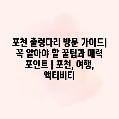 포천 출렁다리 방문 설명서| 꼭 알아야 할 꿀팁과 매력 포인트 | 포천, 여행, 액티비티 포천의 출렁다리는 아름다운 경치를 감상할 수 있는 최고의 포인트입니다. 이곳은 높이와… 더 보기 »포천 출렁다리 방문 가이드| 꼭 알아야 할 꿀팁과 매력 포인트 | 포천, 여행, 액티비티