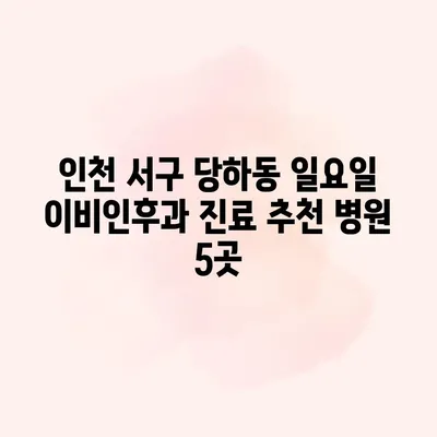인천 서구 당하동 일요일 이비인후과 진료 추천 병원 5곳