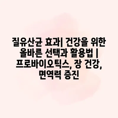 질유산균 효과| 건강을 위한 올바른 선택과 활용법 | 프로바이오틱스, 장 건강, 면역력 증진에 대해 알아보겠습니다. 프롤비오틱스는 주로 장 건강을 개선하고, 장내 유익균을 증식시키는 데 도움을… 더 보기 »질유산균 효과| 건강을 위한 올바른 선택과 활용법 | 프로바이오틱스, 장 건강, 면역력 증진