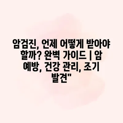 암검진, 언제 어떻게 받아야 할까? 완벽 가이드 | 암 예방, 건강 관리, 조기 발견”