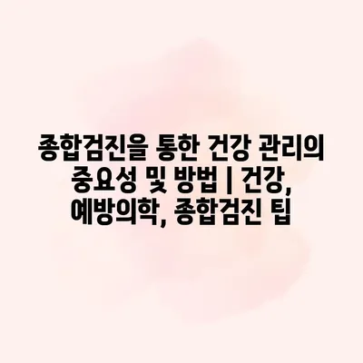종합검진을 통한 건강 관리의 중요성은 아무리 강조해도 지나치지 않습니다. 정기적인 검진은 질병 예방과 조기 발견의 핵심으로, 많은 건강 문제를 사전에 예방할 수 있도록 도와줍니다. 종합검진을… 더 보기 »종합검진을 통한 건강 관리의 중요성 및 방법 | 건강, 예방의학, 종합검진 팁