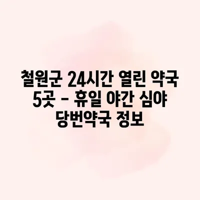 철원군 24시간 약국 찾기 휴일 야간 심야 일요일 당번약국 5곳 철원군에서는 긴급한 상황에서도 약이 필요할 경우, 24시간 운영하는 약국을 찾기가 어려울 수 있습니다. 이번 블로그… 더 보기 »철원군 24시간 열린 약국 5곳 – 휴일 야간 심야 당번약국 정보