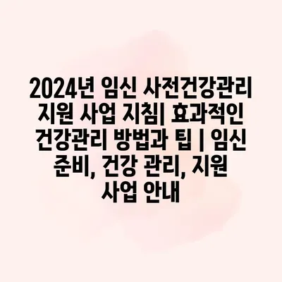 2024년 임신 사전건강관리 지원 사업 방법에 따라, 모든 예비 엄마들은 보다 나은 건강 관리를 받을 수 있습니다. 이번 사업은 임신 준비 단계부터 출산 전까지 필요한… 더 보기 »2024년 임신 사전건강관리 지원 사업 지침| 효과적인 건강관리 방법과 팁 | 임신 준비, 건강 관리, 지원 사업 안내