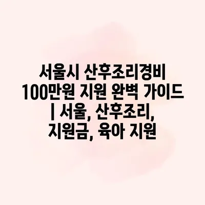 서울시 산후조리경비 100만원 지원 완벽 설명서 산후조리는 출산 후 어머니와 아기가 건강하고 행복하게 지낼 수 있는 중요한 시간입니다. 서울시는 이러한 소중한 시간을 지원하기 위해 산후조리경비를… 더 보기 »서울시 산후조리경비 100만원 지원 완벽 가이드 | 서울, 산후조리, 지원금, 육아 지원