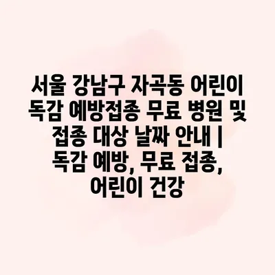 서울 강남구 자곡동 어린이 독감 예방접종 무료 병원 및 접종 대상 날짜 안내 | 독감 예방, 무료 접종, 어린이 건강