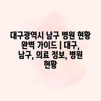대구광역시 남구 병원 현황 완벽 설명서는 남구 지역의 다양한 의료 내용을 한눈에 확인할 수 있는 유용한 자료입니다. 남구에는 질 높은 진료를 제공하는 병원과 클리닉이 다양하게… 더 보기 »대구광역시 남구 병원 현황 완벽 가이드 | 대구, 남구, 의료 정보, 병원 현황