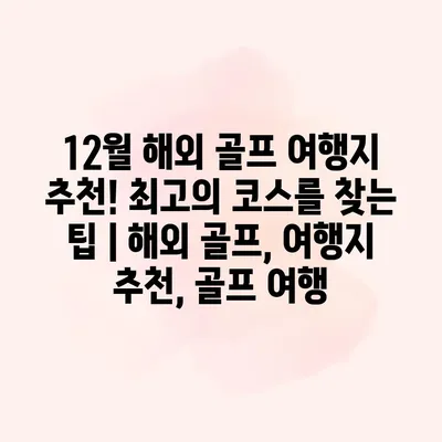 12월 해외 골프 여행지 추천! 최고의 코스를 찾는 노하우를 경험해 보세요. 겨울철에도 따뜻한 지역에서 골프를 즐길 수 있는 최적의 시기에 접어듭니다. 가장 인기 있는 여행지로는… 더 보기 »12월 해외 골프 여행지 추천! 최고의 코스를 찾는 팁 | 해외 골프, 여행지 추천, 골프 여행