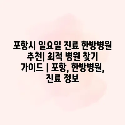 포항시에서 일요일에 진료를 받을 수 있는 한방병원을 찾고 계신가요? 이번 글에서는 포항의 한방병원 내용을 한눈에 살펴보고, 일요일 진료를 하는 최적의 병원을 추천해알려드리겠습니다. 한방병원은 전통적인 한의학을… 더 보기 »포항시 일요일 진료 한방병원 추천| 최적 병원 찾기 가이드 | 포항, 한방병원, 진료 정보