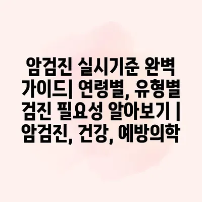 암검진 실시기준 완벽 설명서| 연령별, 유형별 검진 필요성 알아보기 | 암검진, 건강, 예방의학 암은 조기 발견이 생명을 구하는 key입니다. 그러므로 정기적인 암검진은 필수적입니다. 각 나이에… 더 보기 »암검진 실시기준 완벽 가이드| 연령별, 유형별 검진 필요성 알아보기 | 암검진, 건강, 예방의학