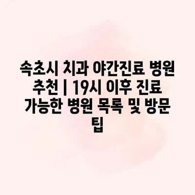 속초시 치과 야간진료 병원 추천 | 19시 이후 진료 가능한 병원 목록 및 방문 팁