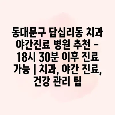 동대문구 답십리동에서 야간 진료를 실시하는 치과를 찾고 계신가요? 특히 18시 30분 이후에 진료가 가능한 병원 내용을 알려알려드리겠습니다. 일상에서 발생할 수 있는 치통이나 치아 문제는 언제든지… 더 보기 »동대문구 답십리동 치과 야간진료 병원 추천 – 18시 30분 이후 진료 가능 | 치과, 야간 진료, 건강 관리 팁
