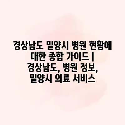 경상남도 밀양시 병원 현황에 대한 종합 설명서 | 경상남도, 병원 정보, 밀양시 의료 서비스 밀양시는 경상남도에 위치한 도시로, 주민들의 건강과 안녕을 위한 다양한 의료 서비스를… 더 보기 »경상남도 밀양시 병원 현황에 대한 종합 가이드 | 경상남도, 병원 정보, 밀양시 의료 서비스