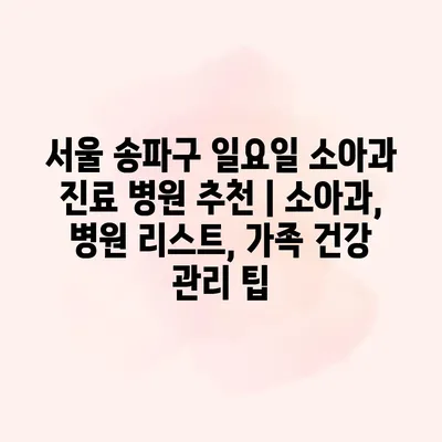 서울 송파구에서 일요일 소아과 진료를 받을 수 있는 병원을 찾고 계신가요? 주말에도 아이의 건강을 지키기 위해서 믿을 수 있는 소아과를 찾는 일은 매우 중요합니다. 이번… 더 보기 »서울 송파구 일요일 소아과 진료 병원 추천 | 소아과, 병원 리스트, 가족 건강 관리 팁